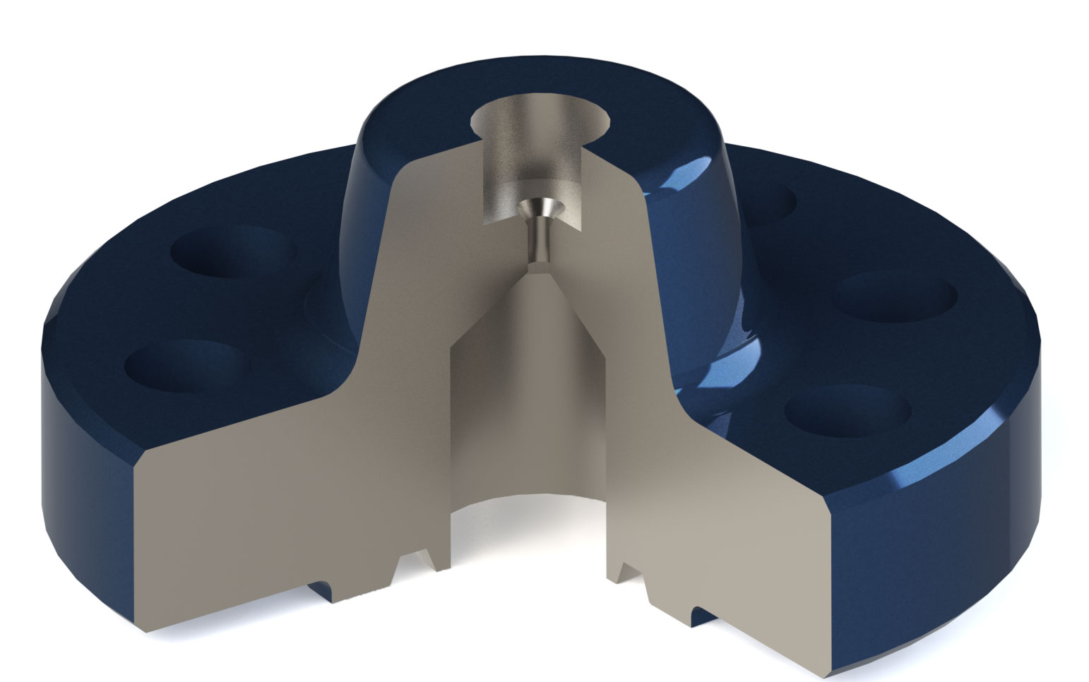 Blind flanges are also designed to API6A spec with top flange hub. Most flanges are offered with a test port and Valve Removal Plug Recess. True blind flanges are available upon request