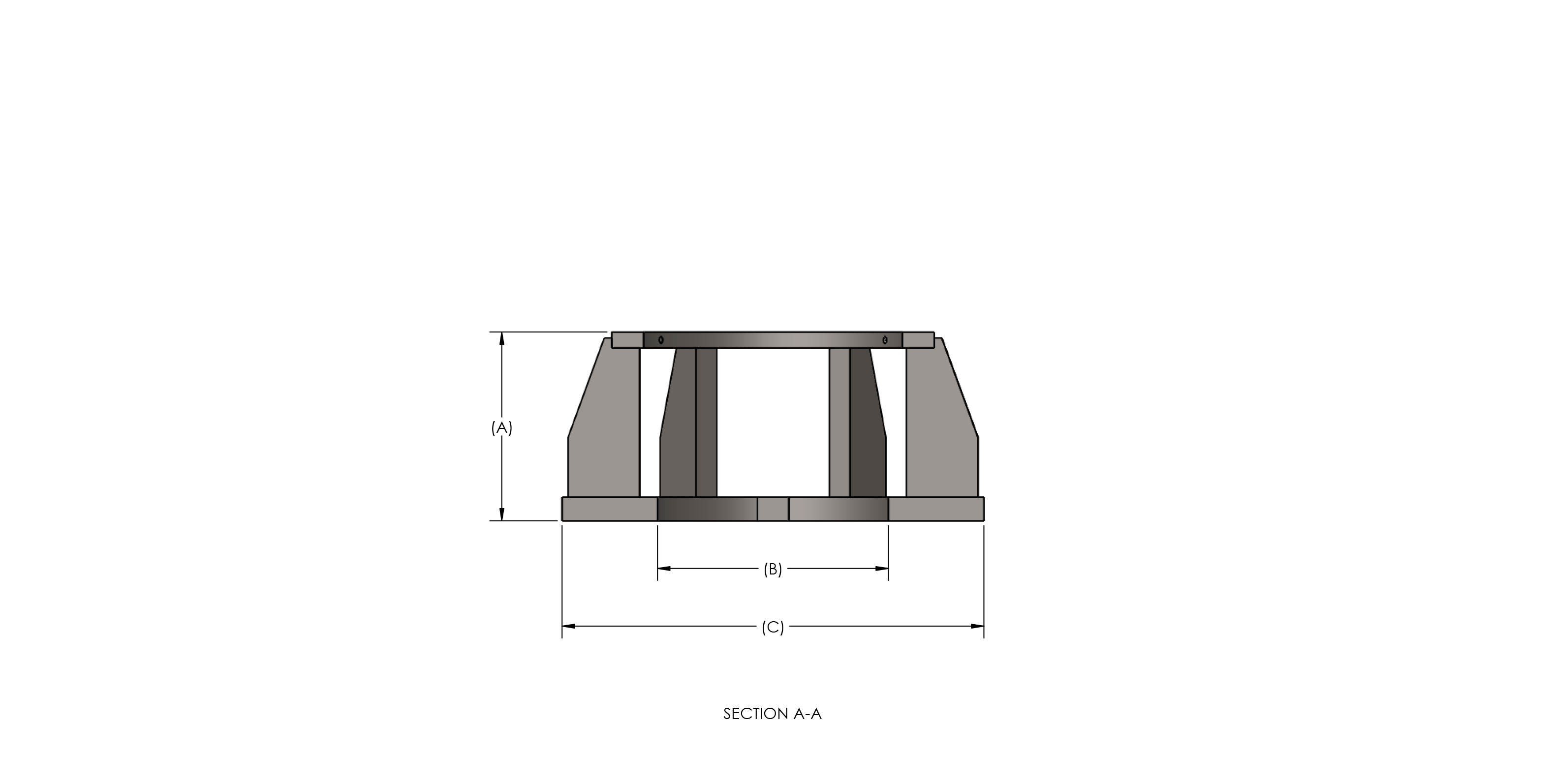 Size | Capacity (lbs) | OAL (A) | Thru Bore (B) | Bottom Plate (C) |