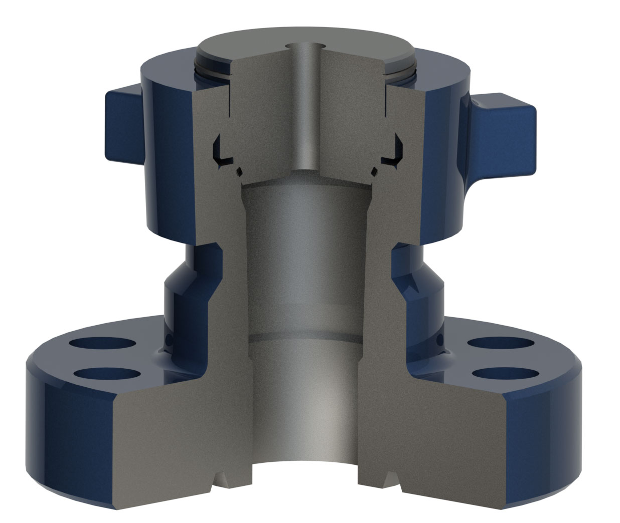 Tree Caps are sometimes referred to as a (BHTA) Bottom Hole Test Adapter. The FV-Tree cap is not an API part, but a blend of the B11-AO or B-15 concept. This term is commonly stocked in 2-1/16″ thru 3-1/8″, EE-NL and FF-NL. Additional sizes and trims available upon request.