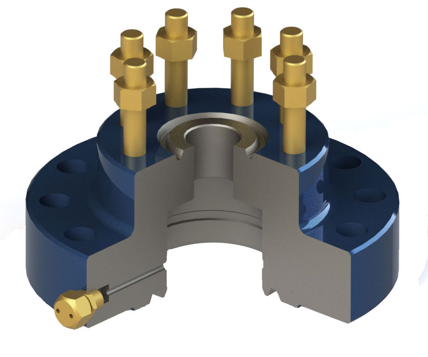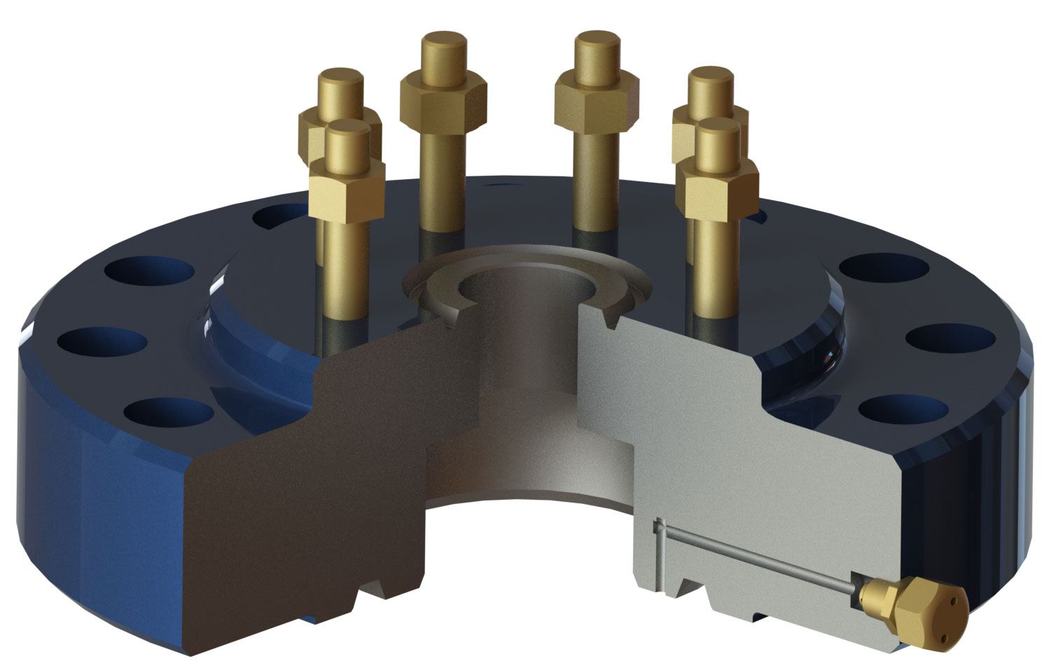 FV-B02 Tubing Adapters suspend the FV-B02 Coupling in the bottom side of the flange with an internal ACME thread with a studded top. This product comes in various sizes and pressure ratings. Please contact your local representative for more details.